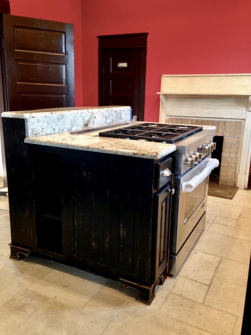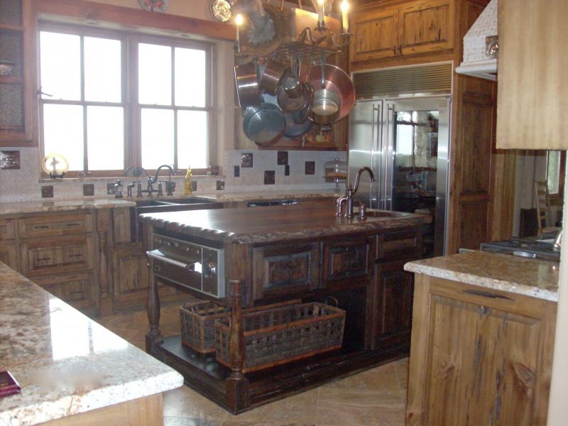 Rustic distressed island built out of Knotty Alder.