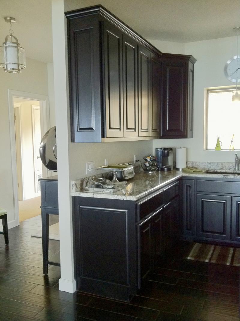 Bar area with raised panel doors, built out of Maple paint grade.
