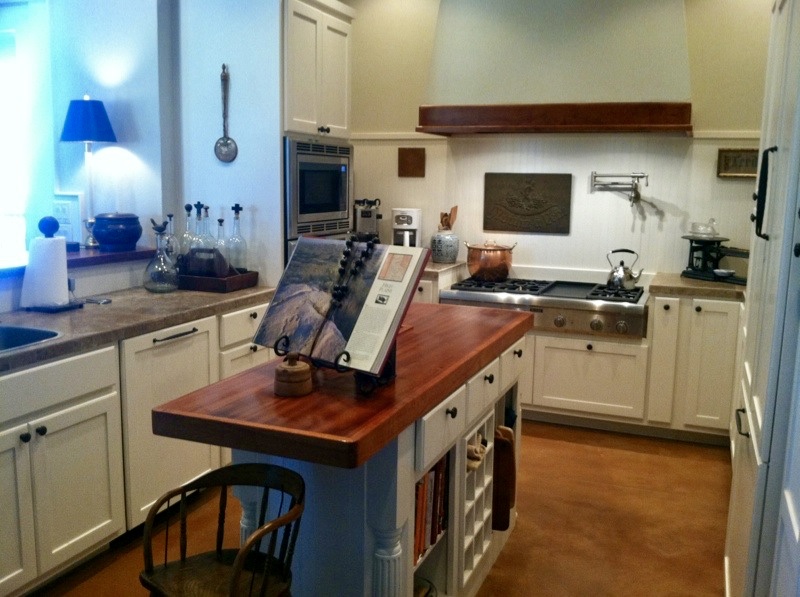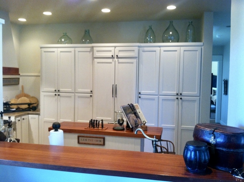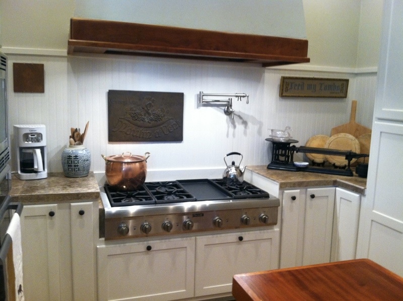 Cottage style kitchen built out of Pecky Cypress.