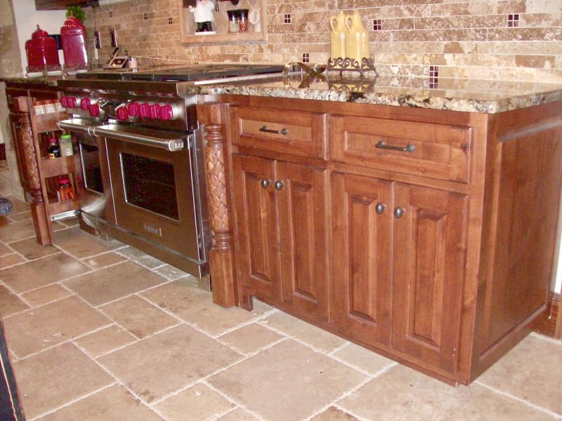 Rustic island with slide in range, built out of Knotty Alder.