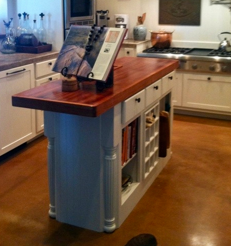 Wooden top island with wine rack & space for cook books, biult out of Maple paint grade.
