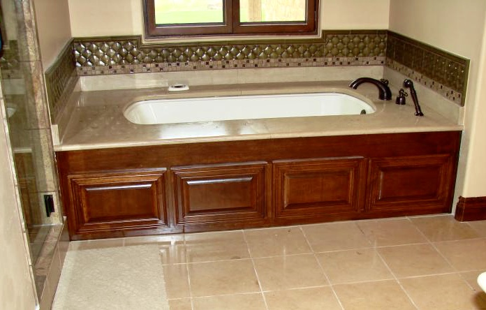 Bathtub wood panels built out of Cherry wood.
