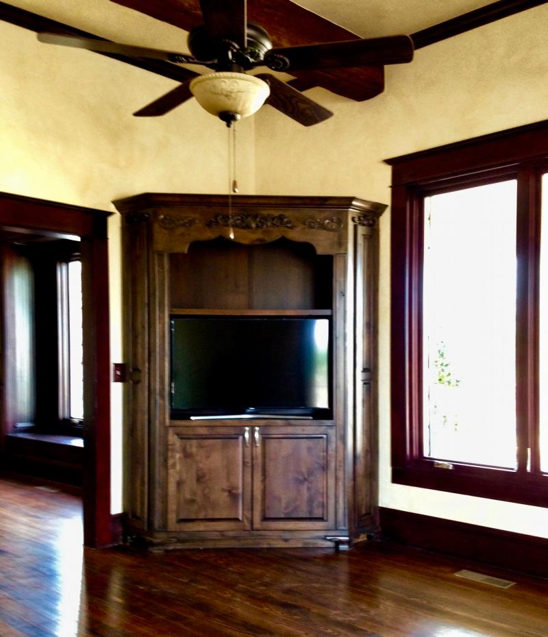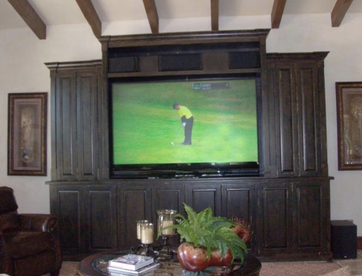 Entertainment center built out of Knotty Alder.