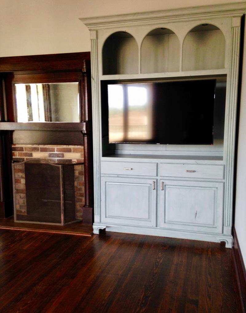 Entertainment center built out of paint grade material.