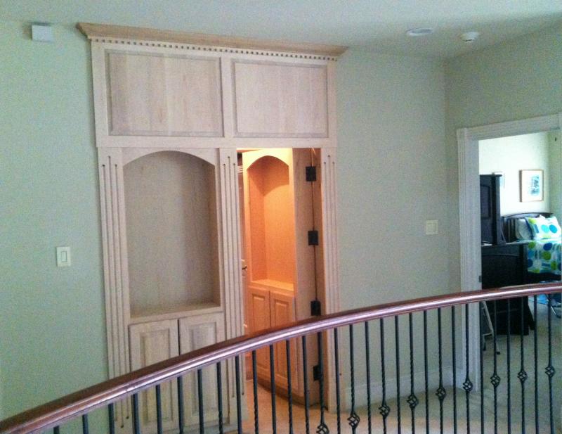Same hidden doors/bookcase seen from a different angle before getting stained.